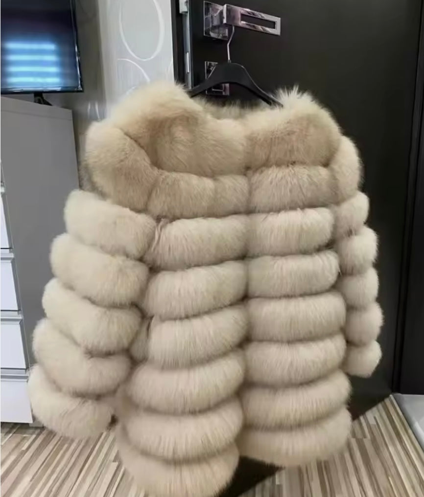 Cette superbe veste en fourrure de renard mi-longue est l'accessoire parfait pour ajouter une touche de luxe à votre garde-robe. Le renard mi-longue est reconnu pour sa douceur et sa chaleur, ce qui en fait un choix élégant et pratique pour les journées froides. Ajoutez une touche de sophistication à votre tenue avec la fourrure mi-longue Kelly.